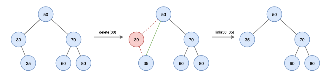 // 지우려는 노드의 왼쪽 자식노드가 없는 경우 (오른쪽 자식 노드만 있는 경우)
