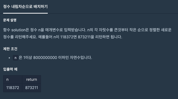 주어진 n값을 String arr로 변환 후 먼저 Arrays.sort로 정렬 후에