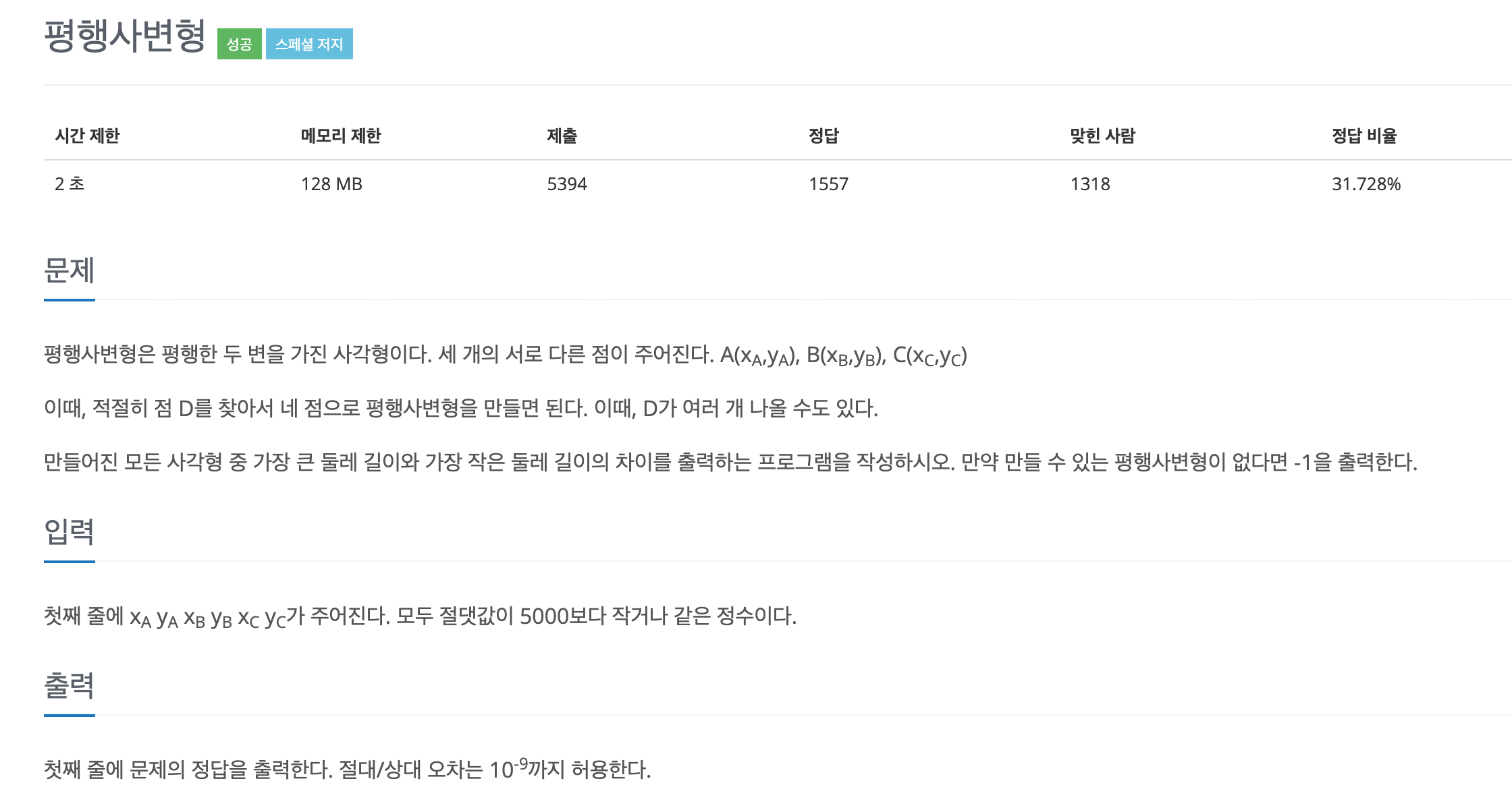 예외조건을 보면 평행사변형을 만들 수 없을 때 -1 을 반환해야 하므로